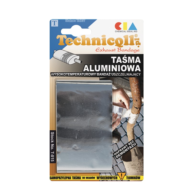 Clean the place of repair with a steel brush, sand paper and degrease it with a paint remover or extraction petrol. After evaporation of solvent stick the tape on the damage giving 15 mm lap. The size of seal should be bigger than the damage by about 30 mm. After sealing the damaged item the tape have to be pressed strongly to the surface. Fixed element is immediately ready to use. In exhaust systems hot combustion gases cause a shrinkage of the tape and full connection of the seal with the surface. A repair with teh aluminium tape is simple and effective as well fast and without disassembly. The tape does not contain harmful asbestos.