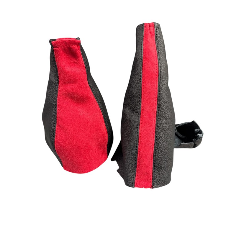 FOR VAUXHALL OPEL ASTRA MK4 GEAR HANDBRAKE GAITER BLACK LEATHER RED ALCANTARA