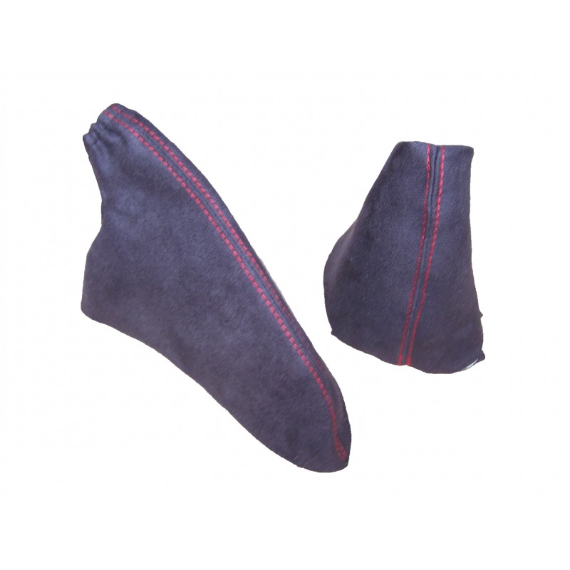 FOR HONDA CIVIC TYPE R 01-03 GEAR HANDBRAKE GAITERS FAUX SUEDE RED STITCH