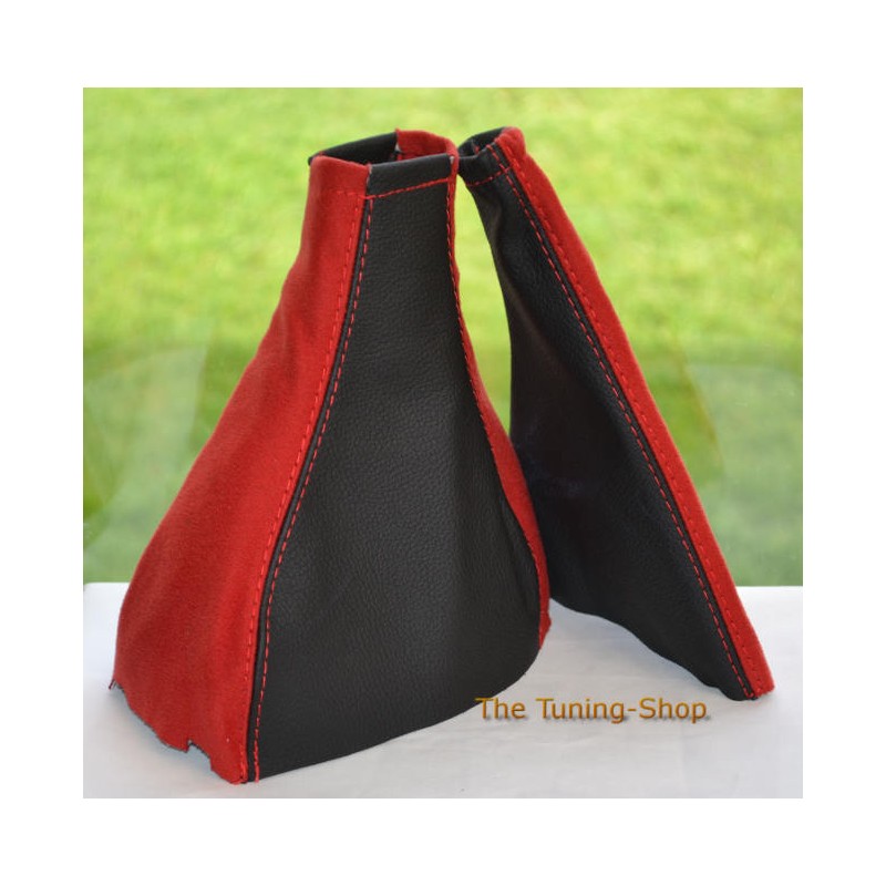 FOR VAUXHALL OPEL CORSA B GEAR HANDBRAKE GAITER black leather red alcantara