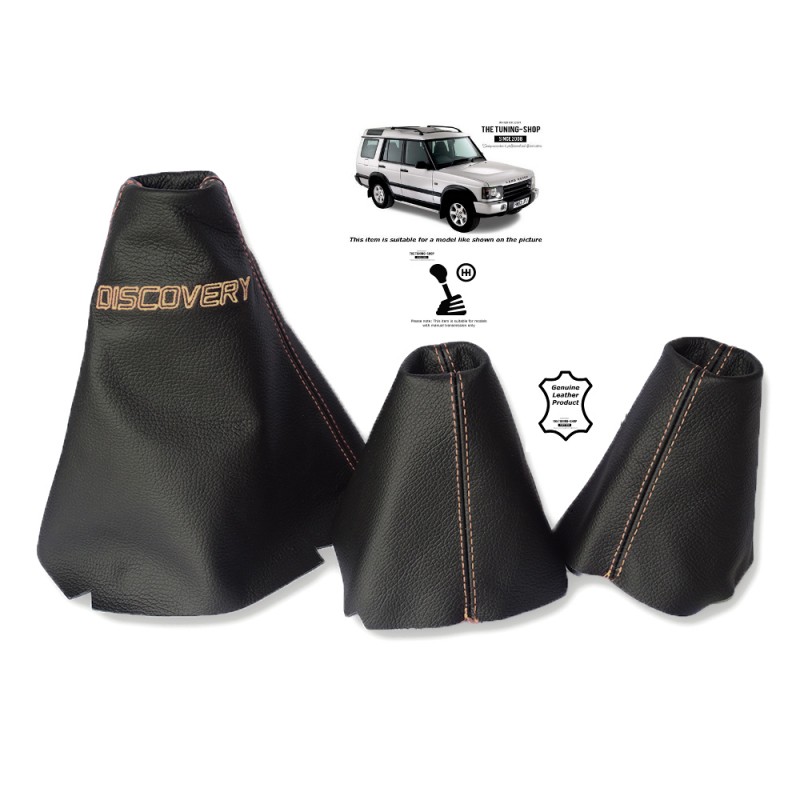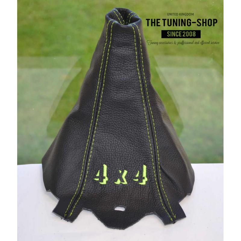 FOR LAND ROVER DISCOVERY 3 LR3 04-09 GEAR GAITER BLACK LEATHER EMBROIDERY 4x4 LIME GREEN STITCHING
