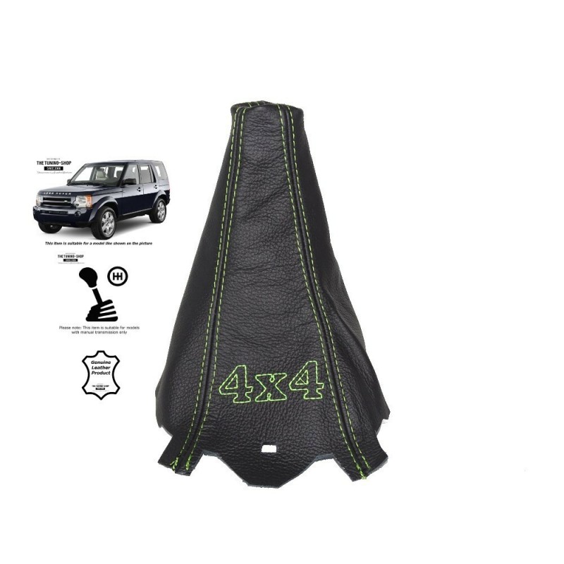 FOR LAND ROVER DISCOVERY 3 LR3 04-09 GEAR GAITER BLACK LEATHER EMBROIDERY 4x4 LIME GREEN STITCHING type 2