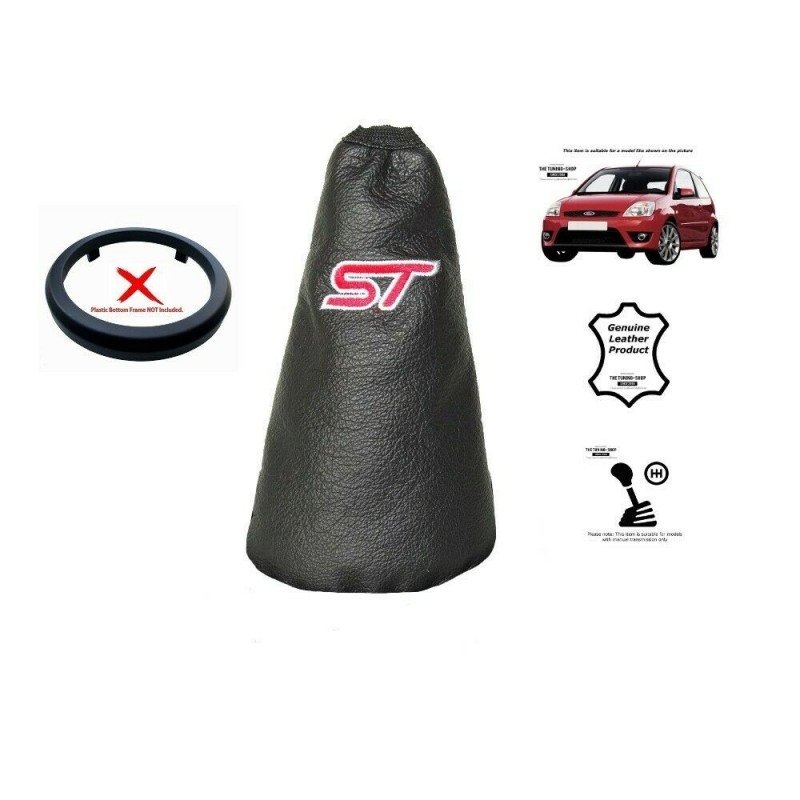 For Ford Fiesta Fusion 2002-2008 Gear Stick Gaiter Leather "ST" Red Embroidery