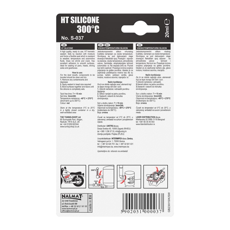 1 x RED HT HIGH TEMPERATURE SILICONE ADHESIVE SEALANT 20ml "Liquid gasket" HERMETIC 300'C High Quality TECHNICQLL NEW